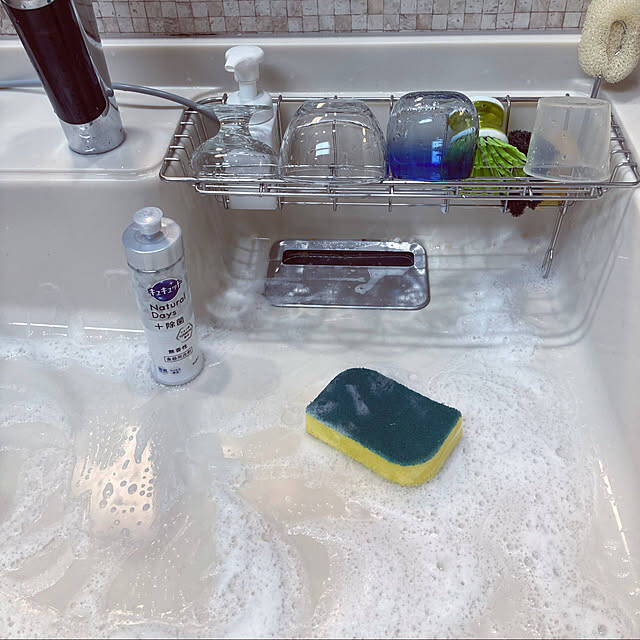 soramamen0123.......さんはキッチンスポンジを取り替えるときに、ウタマロクリーナーでシンクをつけ置き洗いしています。この方法を取り入れてから、水垢に苦戦しなくなったそうですよ。多用途に使えるウタマロクリーナーなら、専用グッズを増やさないのでスマートです。
