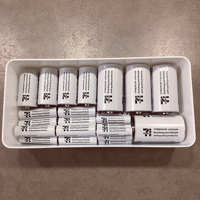 こちらのユーザーさんは、乾電池を収納されています。単1から単4までサイズの異なる乾電池が、キレイに粘土ケースに収まっています。スッキリとした収納でほれぼれしますね。ユーザーさんは、乾電池もモノトーンのモノを選ぶことで、生活感が出ないように工夫されたそうです。
