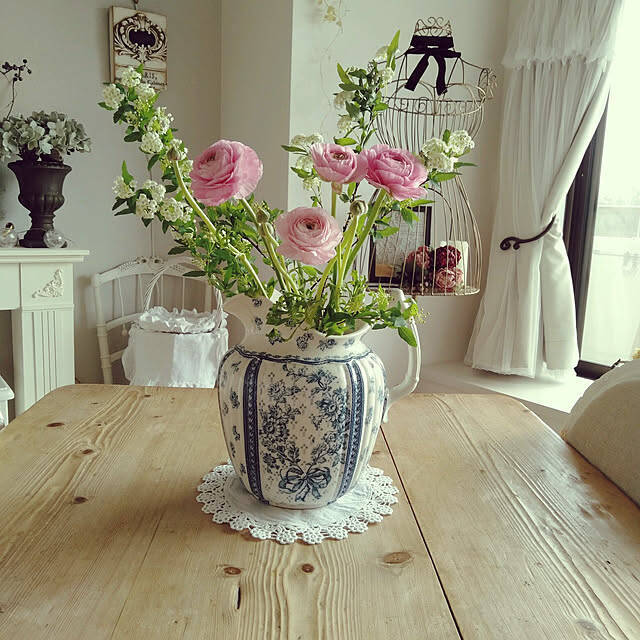 こちらのユーザーさんは、ユニクロでラナンキュラスを買ってきたそうです。2月の実例ですが、一足先に春が来たかのようでとても癒やされるそうですよ。ピッチャーはフランスアンティークのものだそうで、品のある空間を作ってくれていますね。値段も手ごろだったそうで、比較的気軽に買えるのもうれしいです。