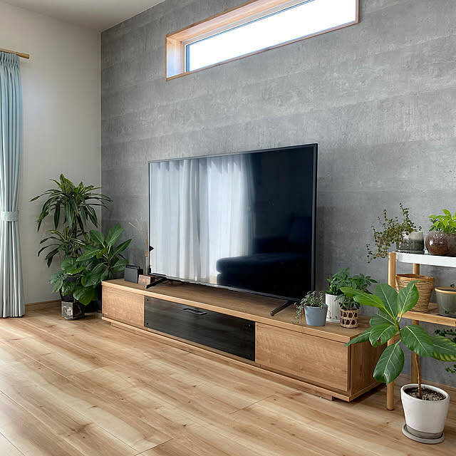 「65インチのテレビを置いても、左右に十分なスペースが残ります。そこにグリーンやフレグランス、時計などを置いてインテリアを楽しんでいます。」