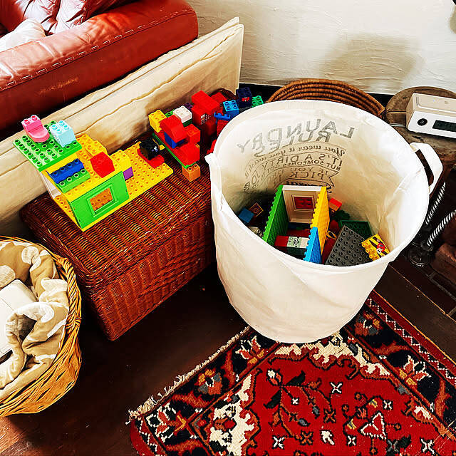 多くの時間を過ごすことが多いリビング。生活感を隠しつつ、すっきり片付いている空間にしたいですよね。最初にランドリーバッグやバスケットをリビングに活用しているユーザーさんの実例をご紹介します。