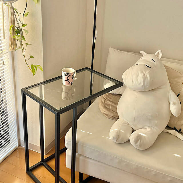 maさんはコンパクトな一人用ソファを愛用されています。高さのあるサイドテーブルを合わせて、飲み物片手に読書をしたり、書きものをしたり、ゆったりとした自分時間を過ごせそうですね。一人暮らしのお部屋にちょうど良いサイズ感の一人用ソファは、心地よい暮らしを支えてくれる存在になります。