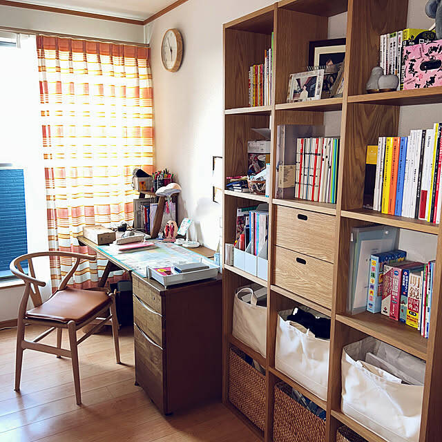 casa.alla_lunaさんは、スタッキングシェルフを本棚として活用しています。ラタンミラーや観葉植物とともに落ち着いた空間を作り上げていますね。社会人になると増えるお仕事関係の本や資料も、この趣のあるシェルフにすっきり収納できます。これから先も、長く愛用できそうです。