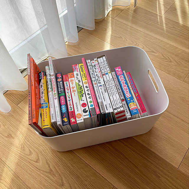 chiさんは、やわらかポリエチレンケースを絵本BOXにされています。小さなお子さんでも選びやすく、出し入れしやすそうですね。やわらかい素材ならぶつかってケガをする心配もありません。お子さんが遊ぶ近くに置いておけば、いつでも好きな本を読んであげられますね。