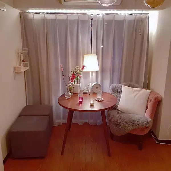 おうちでプチ贅沢をするときのソファに羽根クッションをのせているmiaklipさん。触り心地が良さそうなファーと羽根クッションの組み合わせで、おうち時間がもっと充実しますね。この場所でお花やキャンドルを堪能しているそうで、うっとりする時間が過ごせそうです。