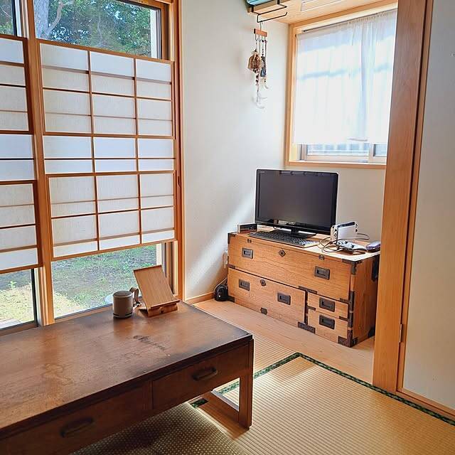 kazuraさんは、古い和箪笥をリメイクして、和室のテレビ台に活用しています。和家具を取り入れることで、一般的なテレビボードよりも和室に自然と馴染み、和のインテリアの演出に◎。後ろに配線の穴をあけたり、上段をパタパタ扉にしたりと、使いやすいリメイクアイデアが参考になります。