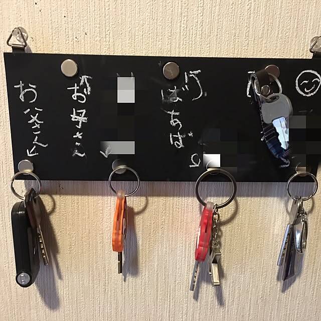 keiichiro26さんは玄関で使う鍵掛けをDIYしました。使っているのは黒板とネオジウム磁石。フックのかわりに、この磁石に鍵をペタッとくっつけて収納する仕組みです。黒板に家族の名前を書いているので、自分の鍵がわかりやすく、付けはずしが簡単なので戻し忘れもなくなりそうですね。