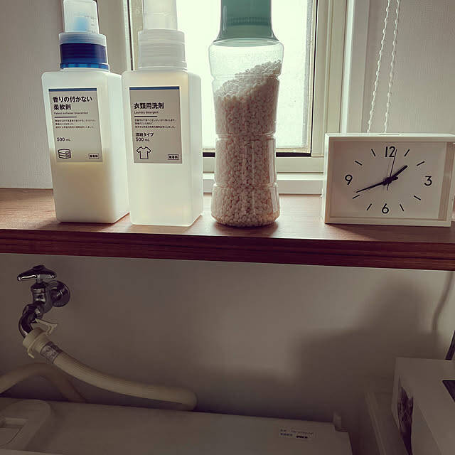 nono.0129さんは、洗濯機まわりに統一感を出すために無印良品の洗剤を選ばれていましたよ。シンプルなパッケージデザインは、洗濯機まわりのインテリアを邪魔しません。すっきりとしたフォルムで収まりも良く、見た目もすっきり整えることができます。
