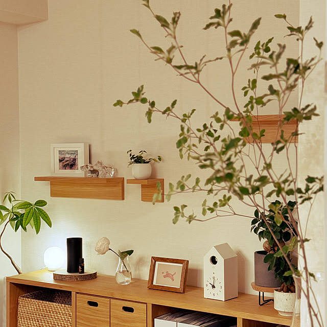hitomiさんは「水を使わないアロマディフューザー」で明かりと香りを楽しんでいます。植物に囲まれた空間で、あたたかみのあるオレンジ色の電球色が、癒しの時間を演出してくれています。無段階調光式で明るさの調整もでき、間接照明としても大活躍。やさしい明かりと香りで、ゆっくりリラックスできそうですね。