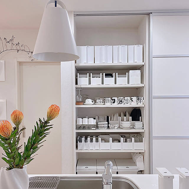 運営チームが選んだのは、mikiさんの投稿です。丁寧に整えられた収納が目を引きますね。mikiさんは棚の中をケースで仕切ることで、食器類を一目で探しやすくし、出し入れのストレスを軽減しています。