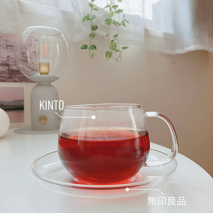 「ソーサーはKINTOではなく、無印良品のガラス製ソーサーを使っています♪」
