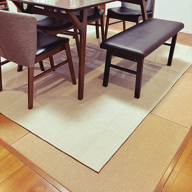 nachiさんはリビングダイニングに「ホームコーディ 洗えるヘリンボーンラグ」を敷かれています。シンプルながら高見えも叶うヘリンボーン柄は、どんなインテリアにもなじみます。カラーバリエーションが豊富なのもうれしいですね♪
