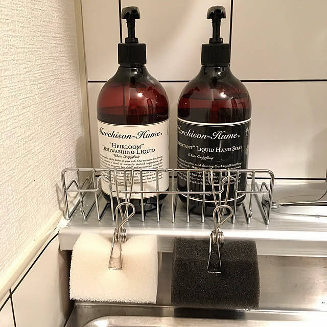 yukinoさんはシンクのラックにワイヤークリップを引っ掛け、キッチンスポンジを挟んで使っています。ラックは吸盤を外し前後を反対に設置することで、ワイヤークリップを引っ掛けやすくされたんだとか。スポンジを浮かせて収納できるので水切れが良く、いつでも気持ちよく使えそうですね。