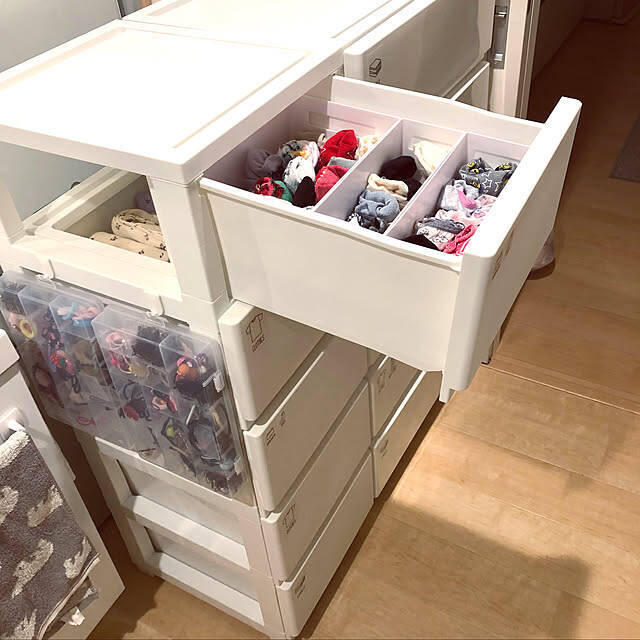 12280311minaさんはダイソーで購入したボックスがチェストのサイズにぴったりだったそうです。お子さんの服をすっきりきれいに収納できていますよ。ボックスを仕切りの代わりにすることで、引き出しの中で服が動いてしまうこともありません。