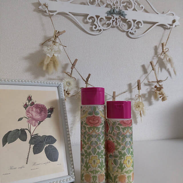miemekkoさんはウィリアム・モリスの丸缶にマグネットを貼って、デスク横の棚にピタッとくっつけられるようにしました。中には付箋を収納されているそうですよ。セリアのデザインペーパーを貼って作ったペン立てともおそろい♪デスク周りを華やかに彩ってくれそうです。