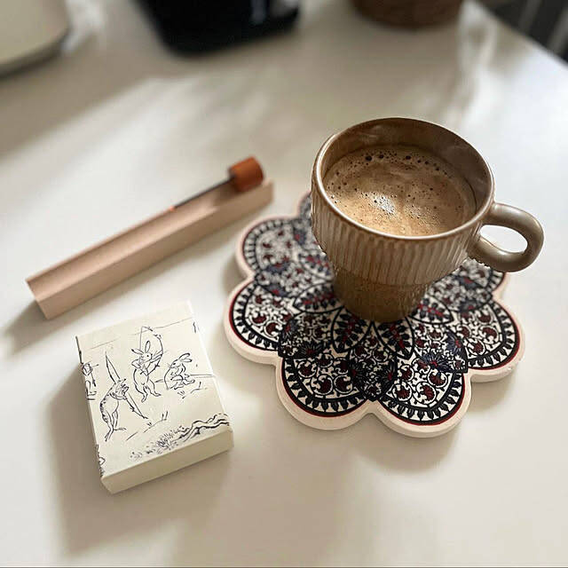 「買ってよかった」物として、こちらのユーザーさんが紹介してくれたのは、美しいデザインの鍋敷きです。ユーザーさんは、マグカップを乗せてお使いでしたよ。華やかでエスニックな雰囲気もある鍋敷きは、キッチンでもダイニングテーブルでも、場を華やかにしてくれそうですね。