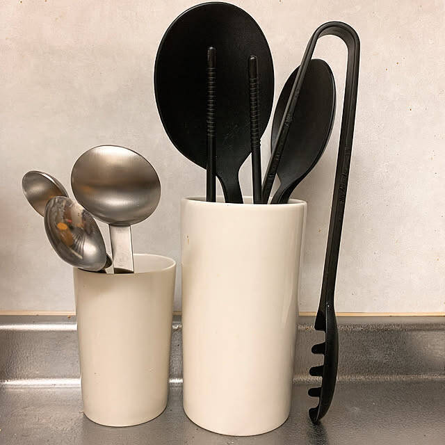 mioさんはキッチンツールをすべて無印良品で統一されていました。シリコーン製のものは「シリコーン 調理スプーン」2サイズと、「シリコーン トング」「シリコーン 菜箸」の4つをセレクト。シリコーンの優れた耐熱・耐久性はもちろんのこと、シンプルなデザインはキッチンをスッキリと見せてくれます。