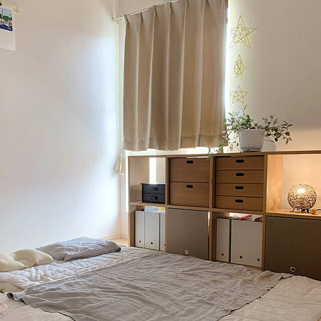 Kaneyukiさんは心地よく暮らす工夫の一つとして、ふとんカバーやシーツなどのファブリックは無印良品のオーガニックコットン洗いざらしシリーズを使っています。サラサラとして肌触りが良く、真っ白で気持ちが良いそうですよ。お気に入りのアイテムを活用して、ぐっすりと眠れるスペースを作りたいものですね!