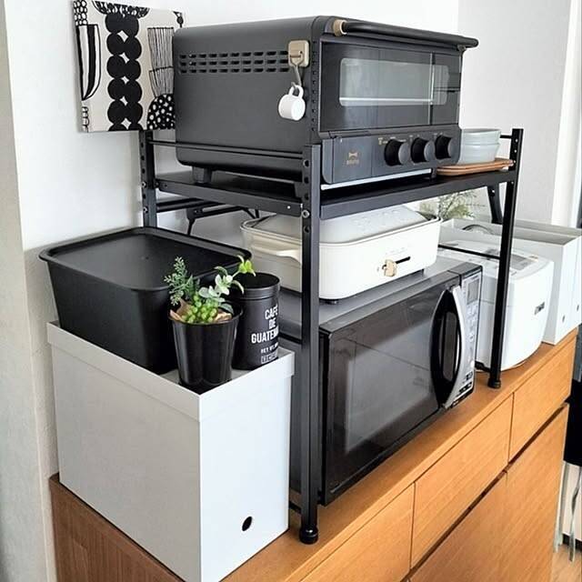 運営チームが選んだのは、hihaさんの投稿です。モノトーンでまとめられたhihaさんの素敵なキッチン。特に、マリメッコの生地を使ったファブリックパネルで、給湯パネルを隠すアイデアが秀逸です!隠しておきたい設備を上手にカバーしつつ、お部屋をすっきりと見せています。