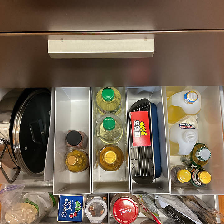 mogumoguさん「わが家の定番アイテムは、無印良品のファイルボックスです。主にキッチンの引出しの収納に使っています。