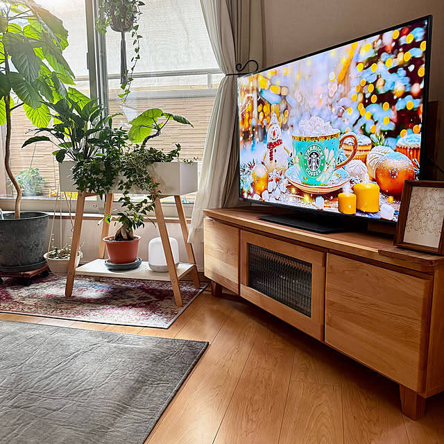 ベルメゾンのアルダー材の低ホルマリンコーナーテレビ台は、室内のスペースがむだなく活用できるすぐれもの。アルダー材を使ったあたたかみのあるデザインは、masumiさんのナチュラルテイストなお部屋との相性も抜群ですね。低ホルマリン仕様で安心して使用できるのもうれしいポイントですよ。