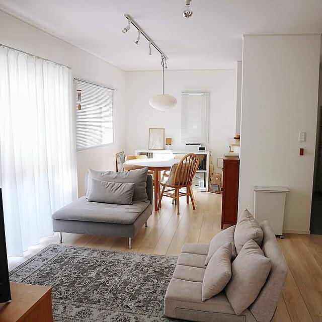 aya_blueさんのリビングには、ベルメゾンの洗えるローソファーが新しく仲間入りしていました。低めのソファは落下の危険が少なく、お子さんと暮らすご家庭でも安心して使用できますよ。フルカバーリング仕様なら、汚れてしまっても簡単にお手入れができますね。