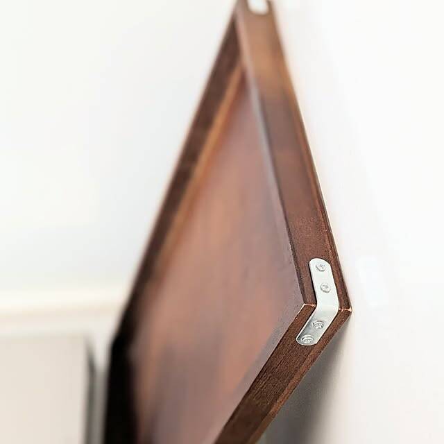 ダイソーの木製トレーの角にセリアの金具を取り付けてリメイクされた、PEROさん。異素材ミックスで、スタイリッシュなアクセントになっていますね。L字金具で留めることで、トレーの強度アップにもなるのがうれしいポイントです。