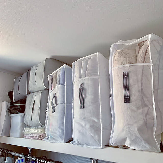 来客用の布団を3組分収納しているlove1017さん。ニトリの収納バッグなど、収納袋を使い分け、押し入れを見事に整えています。取っ手がついているのも取り出しやすくていいですね。何度見ても気持ちのいい収納です。