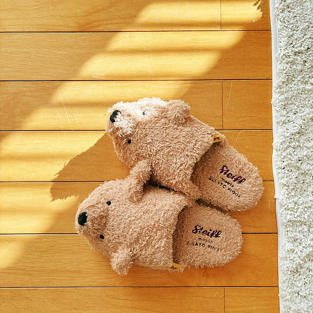 madeleineさんがリビングで使われているのは、くまちゃんモチーフのスリッパです。ドイツ生まれのテディベアブランド「シュタイフ」と、ジェラートピケのコラボレーションアイテムとのこと。もこもこととっても気持ちがよさそうですね。