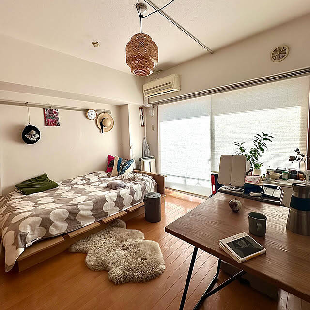 ひとり暮らしをされているnaaaaaaao777さん。ベッドフレームとヘッドボードは、白井産業の「ボナセラ」シリーズを使用されています。空間が広く見えるロースタイルで、木目調のナチュラルなデザインも◎。落ち着きのあるお部屋に惹かれます。