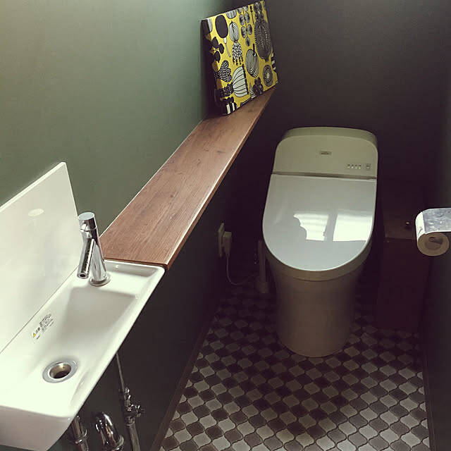 消耗品を、パネルの後ろに隠して置いているというtyutaさんの実例です。手に届きやすい場所でありながら、生活感が出ないようになっているのが良いですね。収納スペースはあえて設けなかったとのことで、スッキリした空間に仕上がっています。