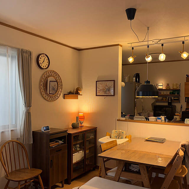 utesannさん夫と子ども2人(3歳娘、1歳息子)の4人で暮らしています。2017年に建売の戸建てを購入しました。もともと北欧雑貨と間接照明が好きで、少し集めていました。ダイニングの照明を変えてからインテリアの見直しをしていて、模様替えを楽しんでいます。