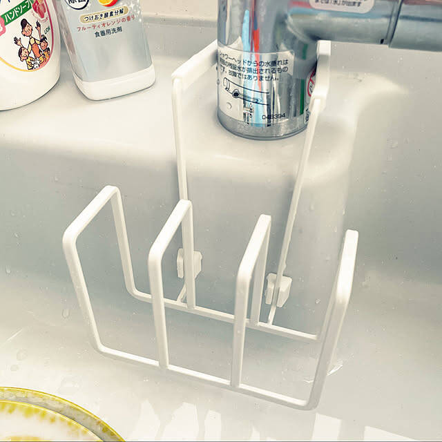 シンクでよく使うスポンジですが、衛生面が気になる方も多いことかと思います。usavichさんが使っている蛇口に掛けられるスポンジホルダーは、スポンジに水分が残っていてもそのままシンクに流れるので、いつでも清潔さを保つことができますよ。スッキリとしたシンプルなデザインも魅力的です。