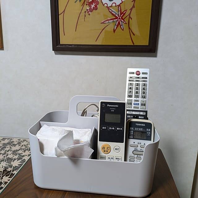 リビングに置くことの多いリモコン類。何種類もあって、どこに置いたか分からなくなることはありませんか。こちらのユーザーさんは、ニトリの「ハコブNインボックス」を使って、ティッシュと一緒にひとまとめに収納していました。リモコンが迷子になることもなく安心ですね。