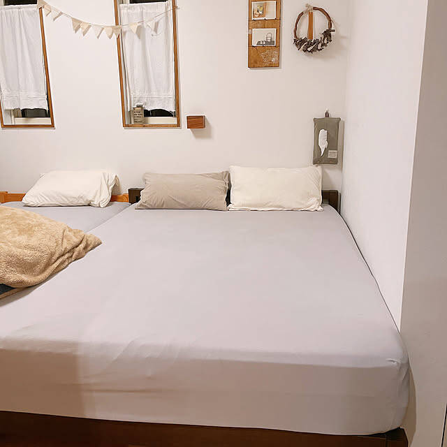 niko3さんは、敷布団にもマットレスにも使えるマルチすっぽりシーツを使われています。裏面にゴム入りで、取り付け取り外しが簡単とのこと。綿100%のコットンウォッシュ素材は肌触りがよく、朝まで気持ちよく眠れそうですね。