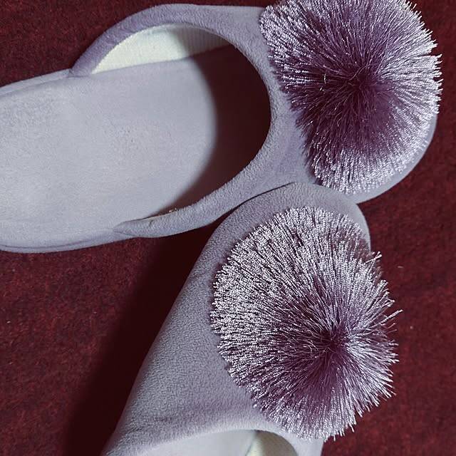 ニトリで購入したスリッパがお気に入りだという、mana_iroさん。甲の部分に付いた大きなポンポンは、ツヤ感のある素材が特徴的です。歩くとポンポンがキラキラと繊細に揺れて、かわいいとのこと。落ち着いた色づかいで、インテリアにもなじみます。