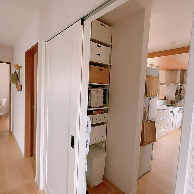 macaさん宅は、木×白を基調に整えられたナチュラルで爽やか、そして落ち着く空間です。そしてそれはインテリアばかりでなく、『収納』で切り取っても変わらないのが素敵なところ。どことなく、インテリアの雰囲気の流れを汲んでいるのも魅力的だと感じます。どうすればこのように、収まりよく心地もいい収納にしていけるのでしょう……。まずは、macaさんの収納づくりのこだわりや大切にしていることを教えていただきました。