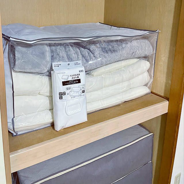 yasuyo66さんは、ニトリのハンドル付きの布団袋を使って布団類を収納しています。掛け布団や敷き布団、毛布に枕まで、ワンセットで収納できるそうですよ♪まとめてしまえる手軽さと、ハンドル付きで持ち上げやすいのが便利ですね。
