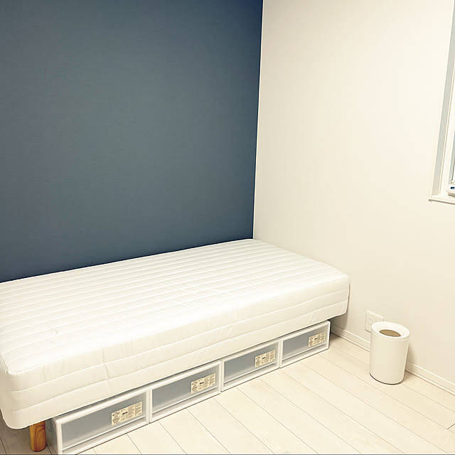 マットレスに脚が付いた、無印良品らしいシンプルさが魅力のこちらのベッド。脚は高さや色を選ぶことができるのもうれしいポイントです。脚があることで、necoさんの実例のように、マットレス下に無印良品の収納ケースを入れて使用することも可能です。