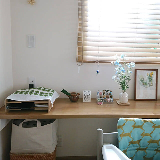 ユーザーさんは「木製書類整理トレーA4・2段」をカウンターにセット。上段は固定電話とルーター、下段は放置されがちだった手帳とタブレット端末の置き場所にされたそうです。ベルサ柄の布をさらりと掛けているのも素敵♡お気に入りのデザインを楽しみつつ、生活感も隠せますね。