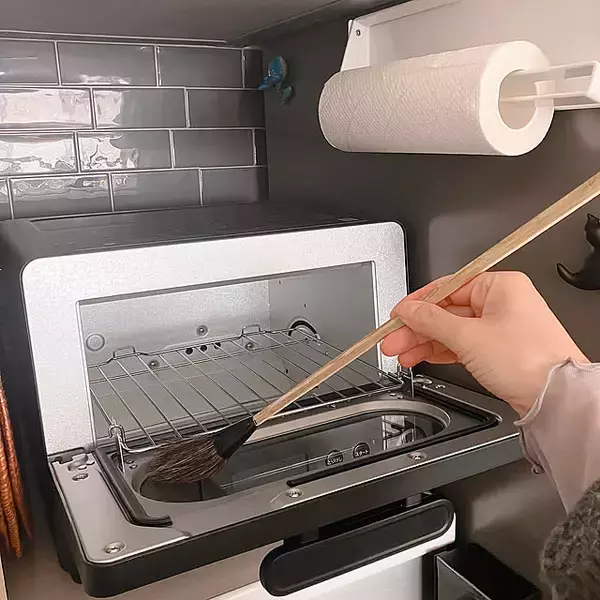 love_january24さんは、ペンキ用の刷毛をトースター掃除に活用しています。幅が広いので、庫内に散らばったパンくずを一度でサッとかき集められますね。すぐ掃除できるよう、トースター横に吊るして収納しているのがポイント。使うたびにサッと掃くだけで、無理なくキレイな状態をキープできそうです。