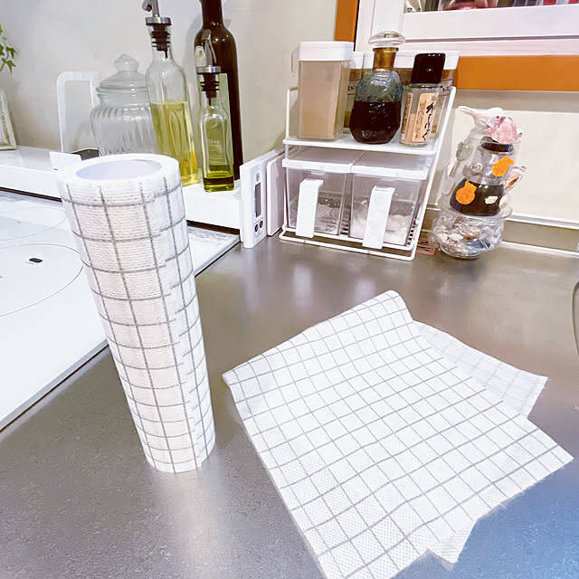 ニトリの「抗菌カット式台ふきん」がお気に入りと紹介してくださったのは、moolさんです。繰り返し使うこともでき、重宝しているそうですよ。布製のふきんのように、洗濯や除菌など手間なく使えるのがうれしいですね。インテリアになじむ、シンプルな色合いもポイントです。