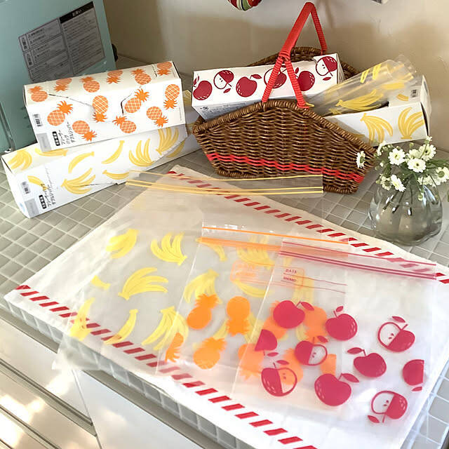 ニトリのジッパーバッグがお気に入りだという、taeさん。たくさん入っていて、値段も安いと紹介してくださいました。フルーツ柄入りのかわいらしいデザインは、楽しく整理整頓ができそうですね。S・M・Lなどサイズがあるので、食材に合わせて選べます。
