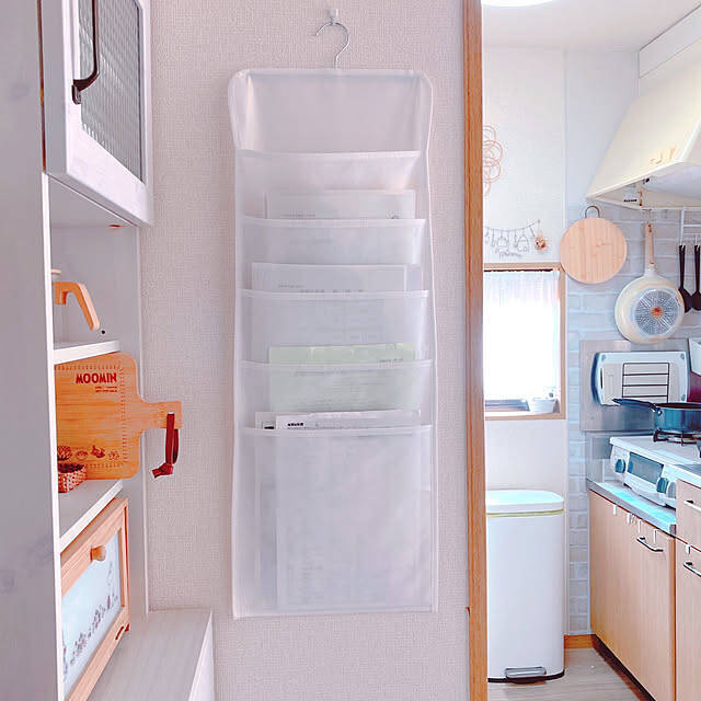 お子さんが学校から持ち帰るプリントの整理に悩んでいませんか?yuyuさんは、ダイソーの「吊り下げシャツ収納」を活用されていました。本来は衣類用ですが、実はプリントや書類の仕分けにも便利ですよ。プリントがバラバラと落下することもなく、ポケットごとに分類しながら収納できるのがうれしいですね。