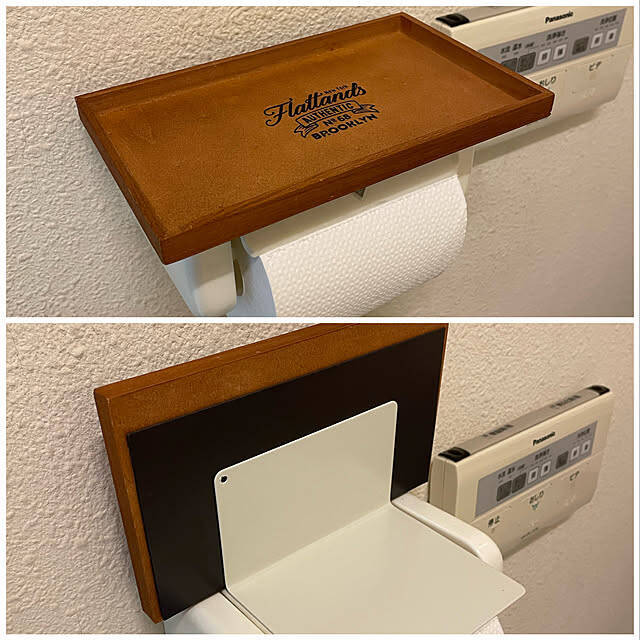 トイレにスマホなどを置ける、ちょっとした棚があるとうれしいですよね。ka10935さんは、セリアのブックエンドとダイソーのトレーで、小さな棚を作られていました。作り方は、トレーとブックエンドを固定し、トイレットペーパーホルダーに挿しこむだけで完成です。工具不要で、気軽に試せるアイデアですね。