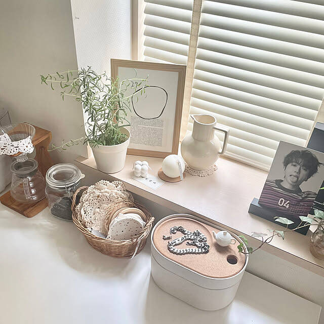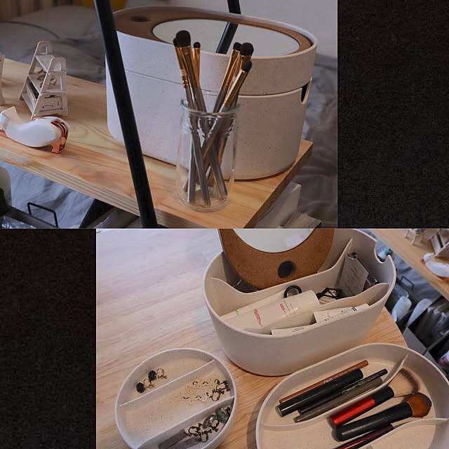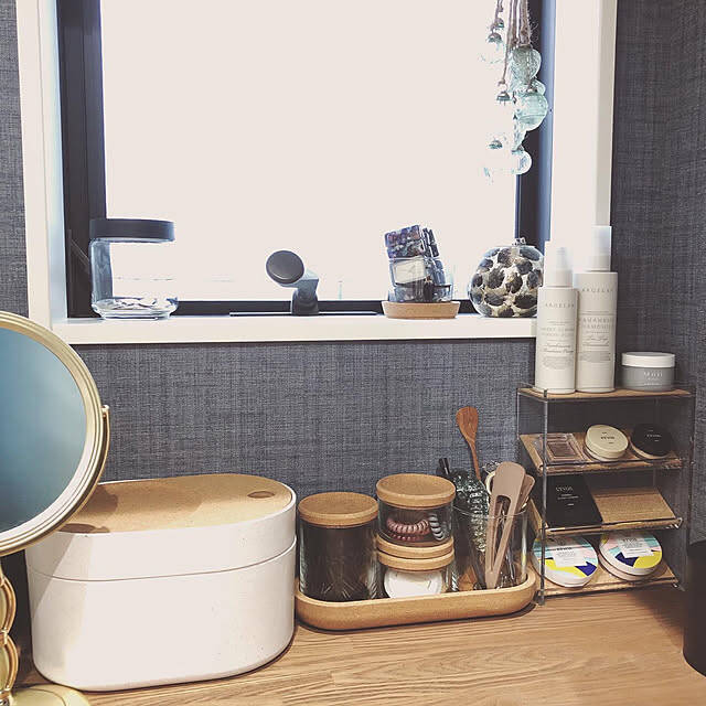 メイクスペースを模様替えされた、-KU-YA-さん。コルクのフタが付いたIKEAのSAXBORGAが、ナチュラルな空間にマッチしています。統一感のあるメイクスペースで、日々のメイク時間も気分が上がりそうです。
