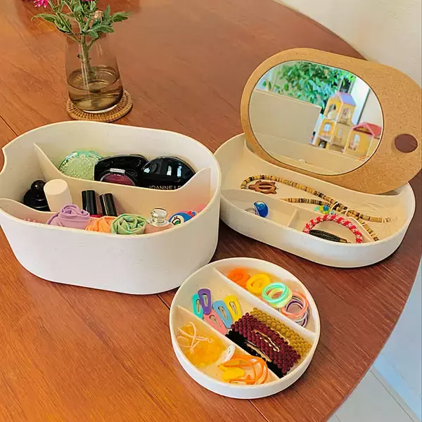 お子さんのおもちゃのメイクセットやアクセサリーを、IKEAのSAXBORGAに収納されているというHarukaさん。細かいおもちゃもまとめやすく、お子さんも使いやすそうですね。成長したら、お子さん自身で買ったコスメ収納にも使えます。