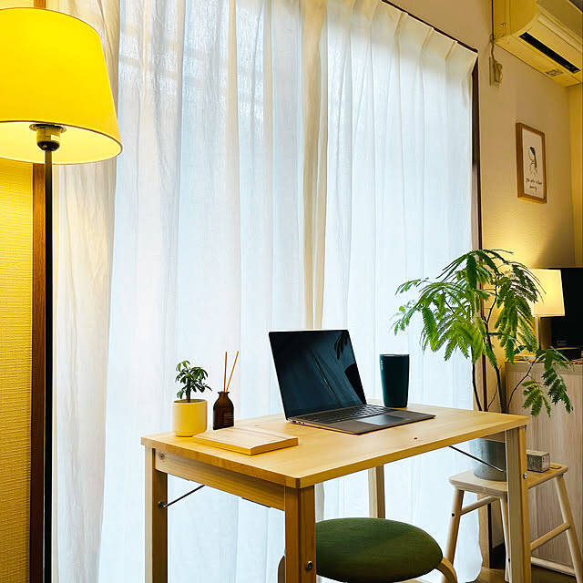 Kazuki___roomさんは、無印良品のパイン材テーブル・折りたたみ式をテレワーク用のデスクとして使っていました。無垢材の自然な風合いを生かしてつくられたテーブルは、経年変化が楽しめるナチュラルな仕上がりです。窓際に寄せて配置することで、お仕事の時間も気持ちよく過ごせそうですね。