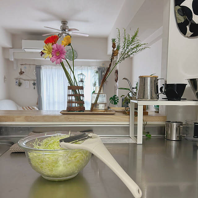 aiaiさんが買ってよかったキッチンアイテムは、ののじの「キャベツピーラー」。ふわふわのキャベツの千切りが、軽い力であっという間に完成します。サラダのおいしさが格段にアップするうえ、時短にも◎。キッチンに馴染むアイボリーカラーは、吊るして干すときも目立たず使いやすいですね。