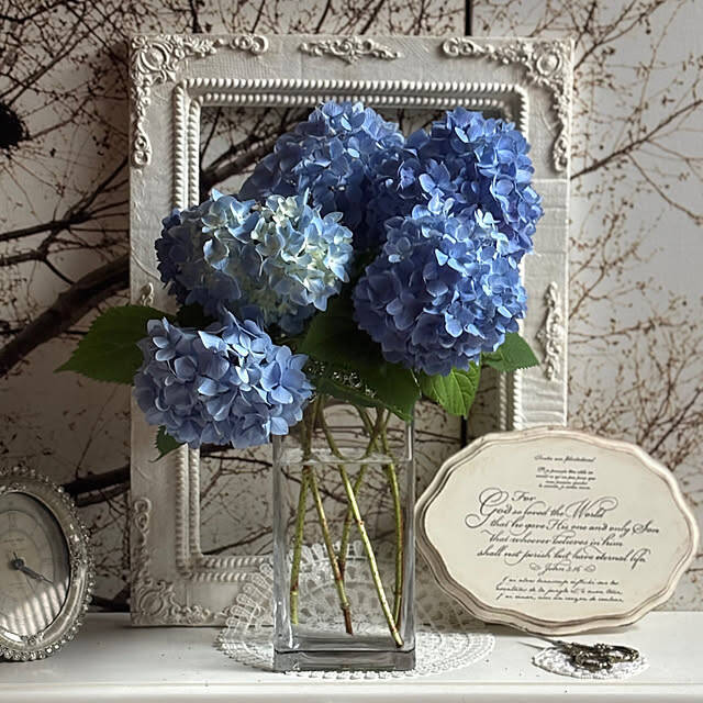 運営チームが選んだのは、maayaさんの投稿です。ブルーの紫陽花が印象的な玄関は、自然の美しさと落ち着きが調和した空間ですね。ホワイトのキャビネットやアンティーク調の小物が美しく馴染み、上品な雰囲気が魅力的です。